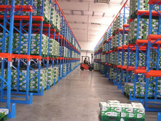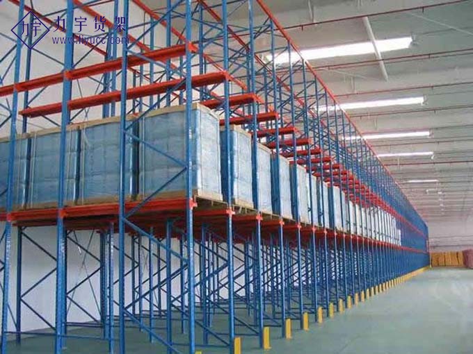 贯通式货架又称驶入式货架,这种货架适合存储批量大、品种少的货物,仓库利用率高,贯通式货架是一种不以通道分割,连续性整体货架,货物存取从货架同一面进出,"先存后取,先取后存",叉车可直接进入货区存取货物,无需占有多条通道.
